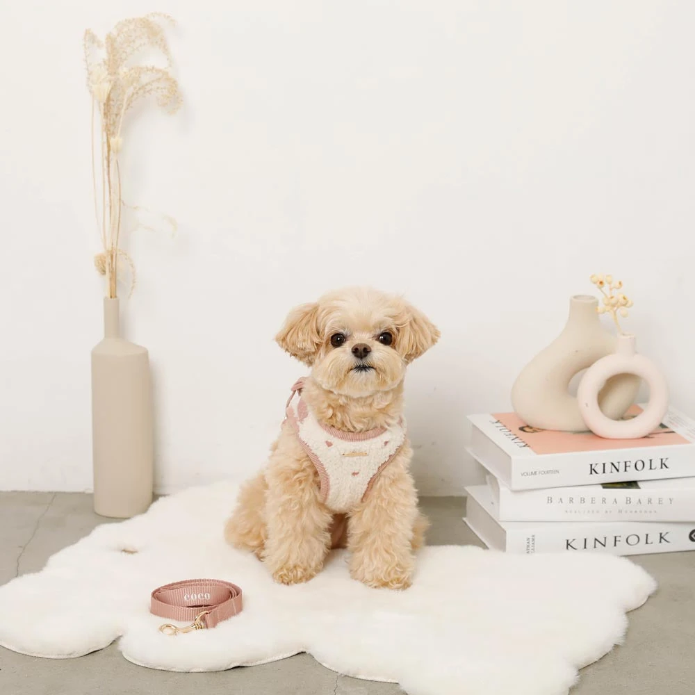このハーネスセットは、見た目の美しさだけでなく、愛犬の快適性と安全性にもこだわっています。柔らかいボア素材は皮膚への刺激が少なく、長時間の装着でも負担になりません。しっかりとした構造でありながら、愛犬の動きを妨げない設計で、自由で楽しいお散歩をサポートします。