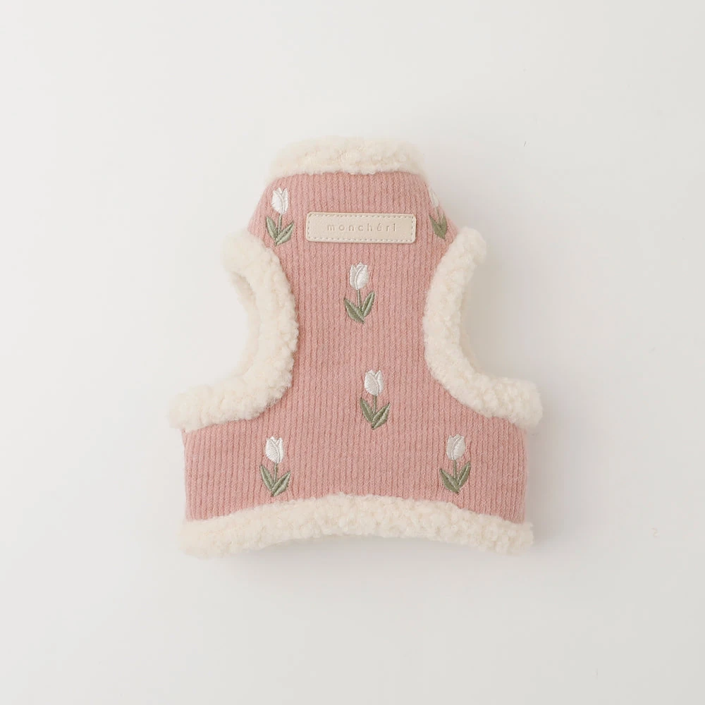 ボアチューリップ刺繍ハーネス+リードSET【名入れ刺繍対応】