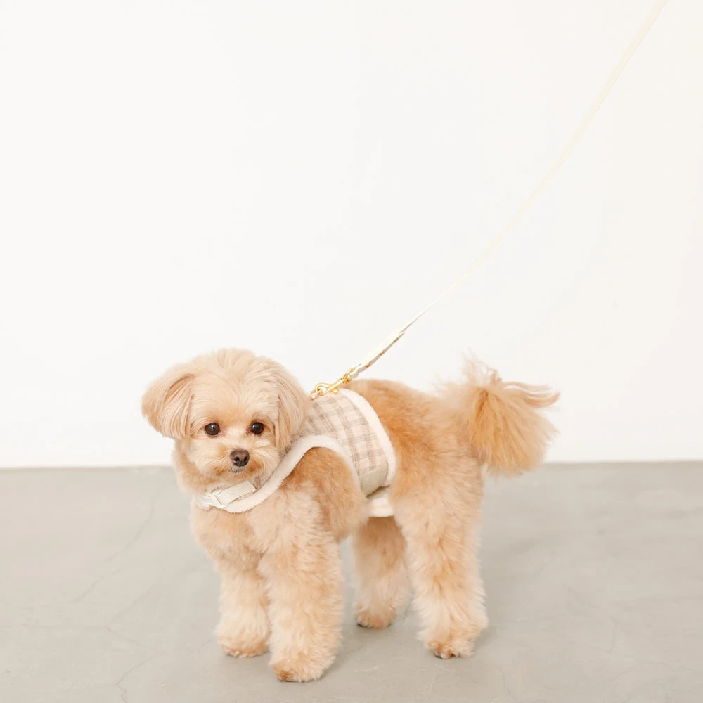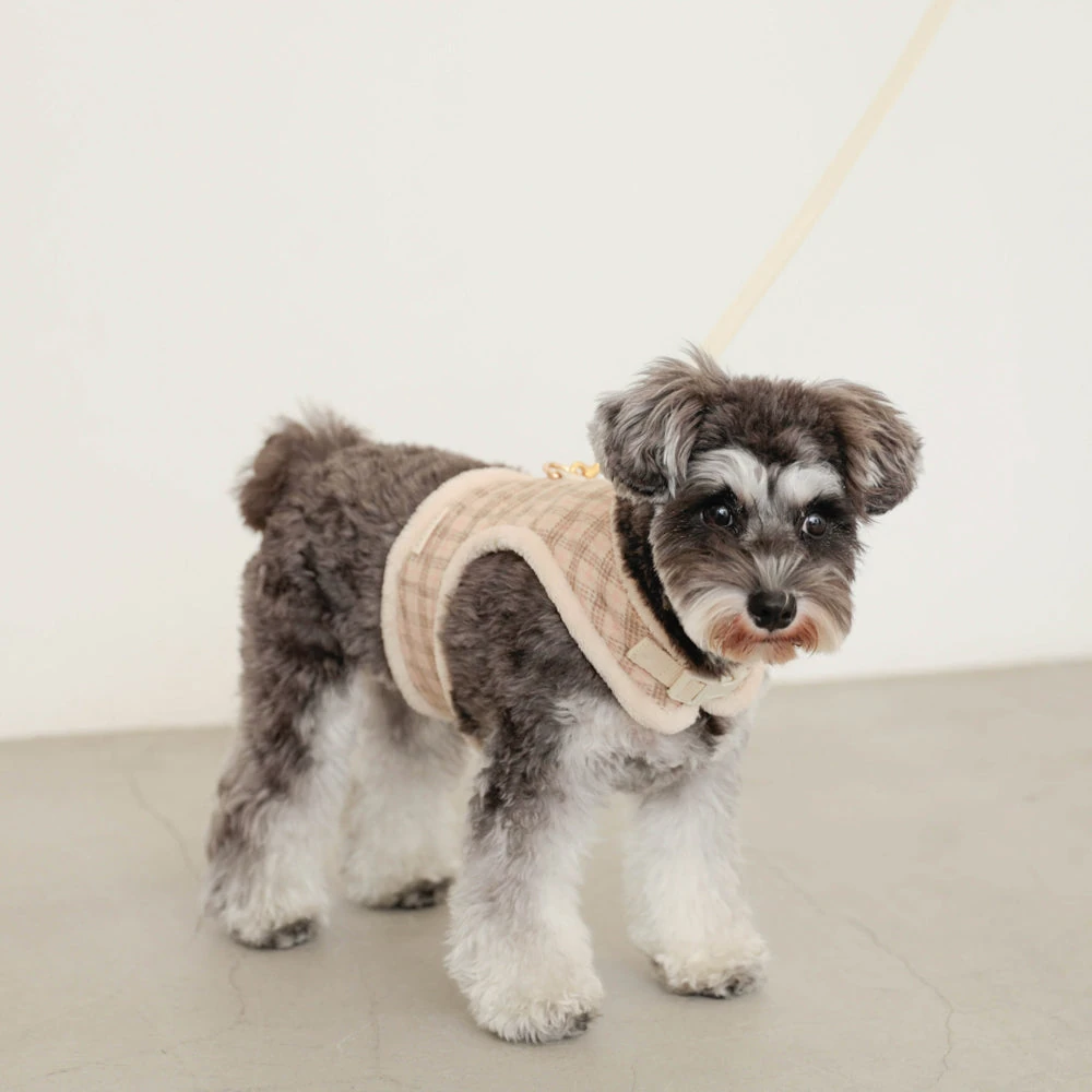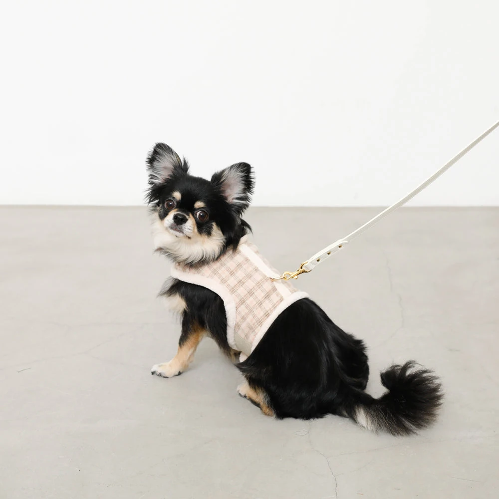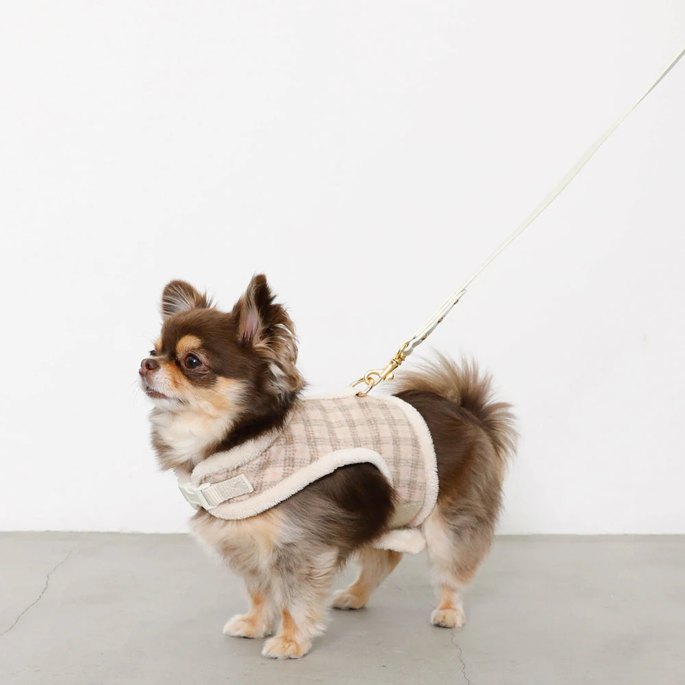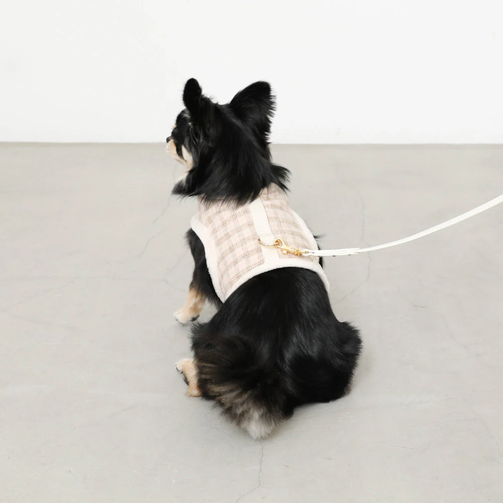 チェック×ファーハーネス:愛犬のための最高級ファッションと機能性の融合