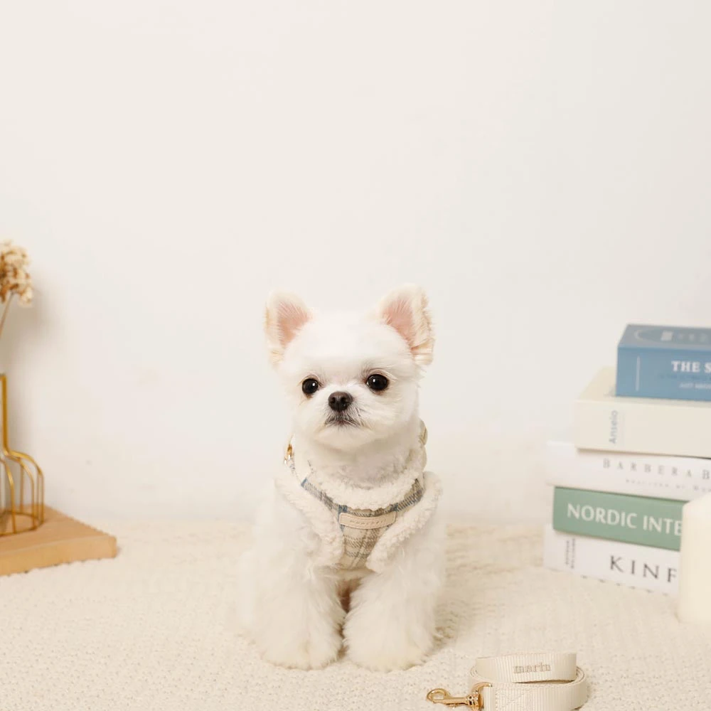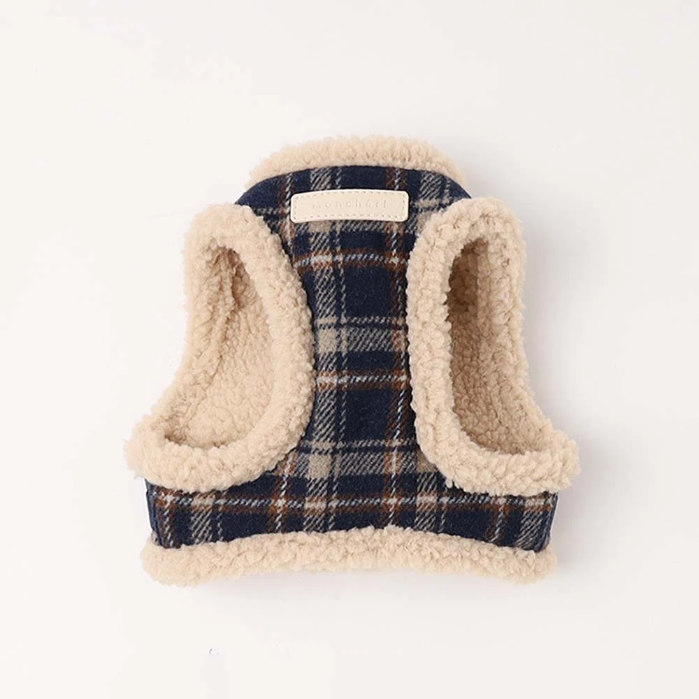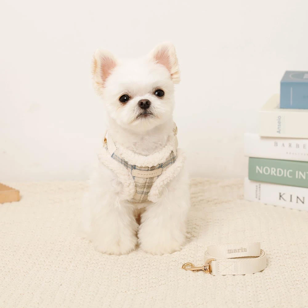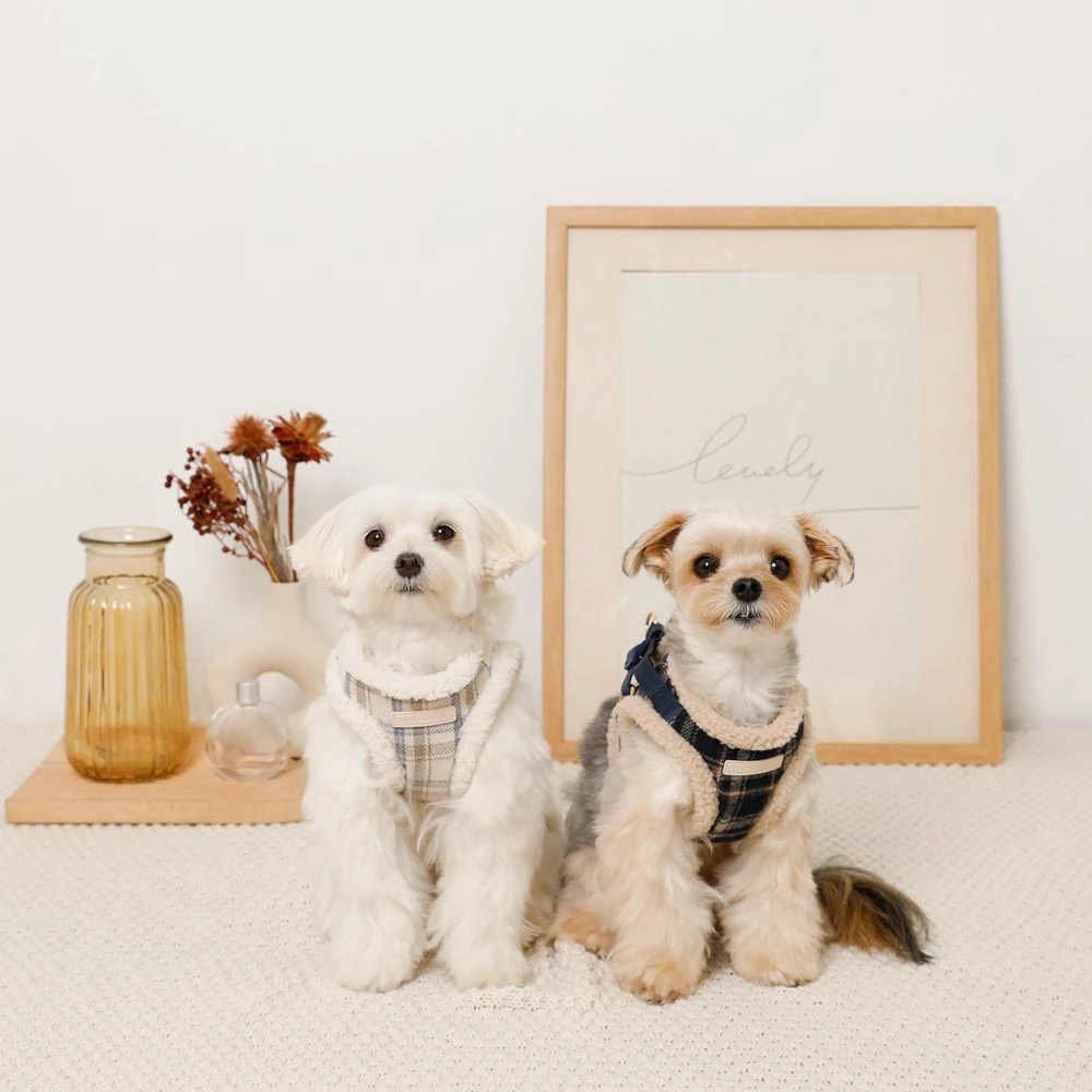 チェック柄ボアハーネス+リードSET:愛犬のための最高級ファッションアイテム