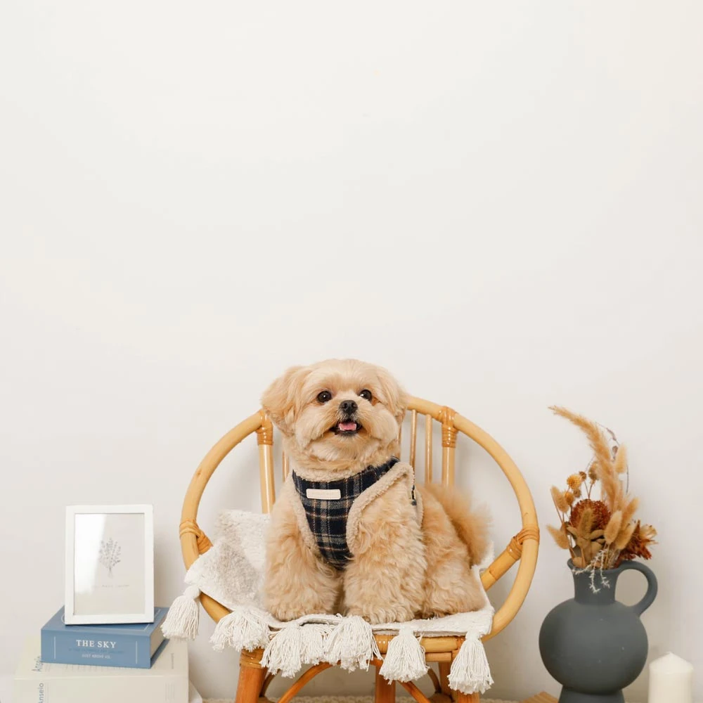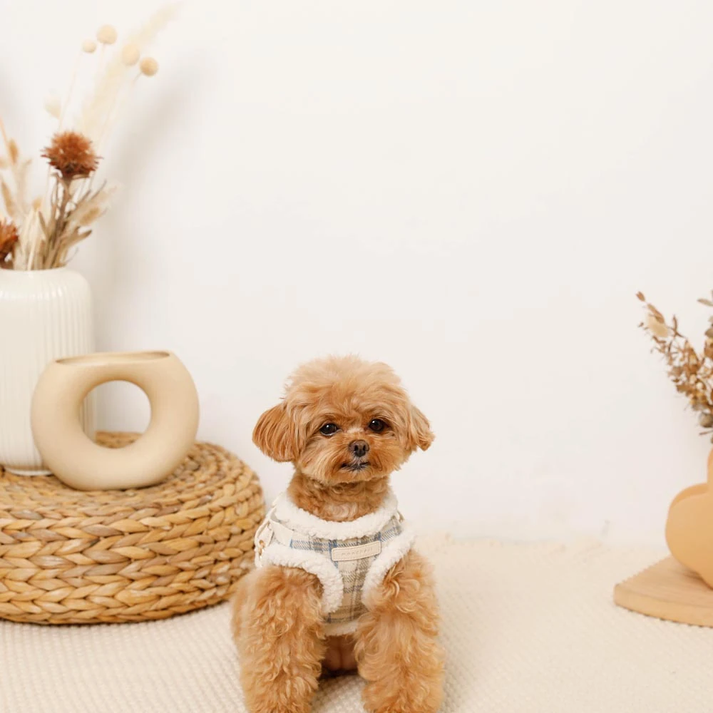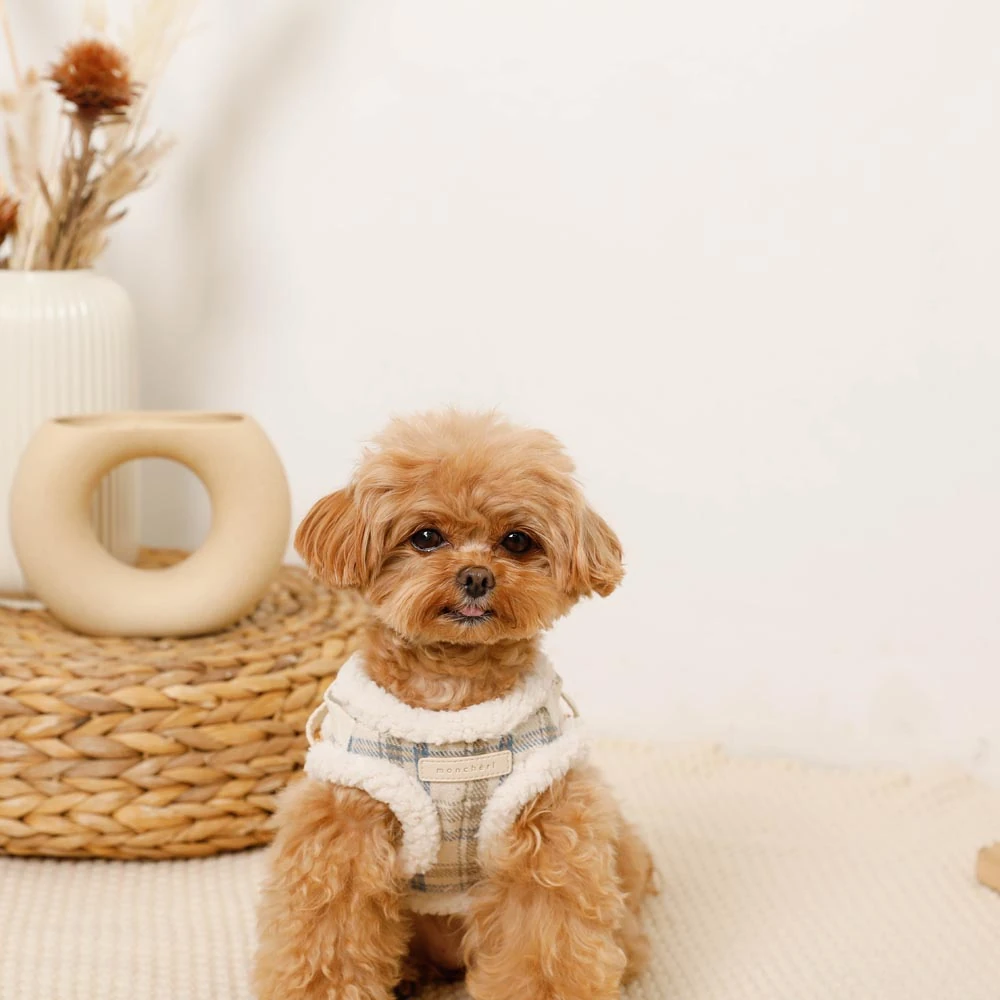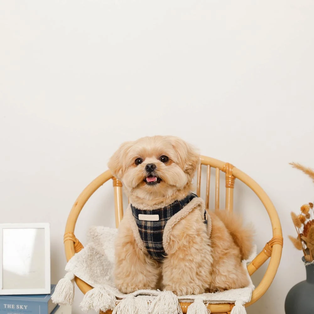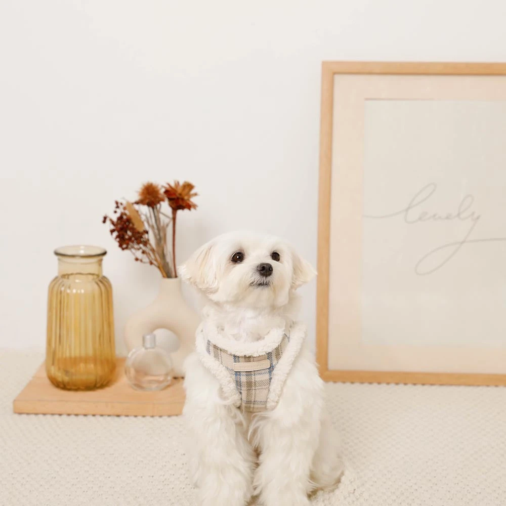 チェック柄ボアハーネス+リードSET:愛犬のための最高級ファッションアイテム
