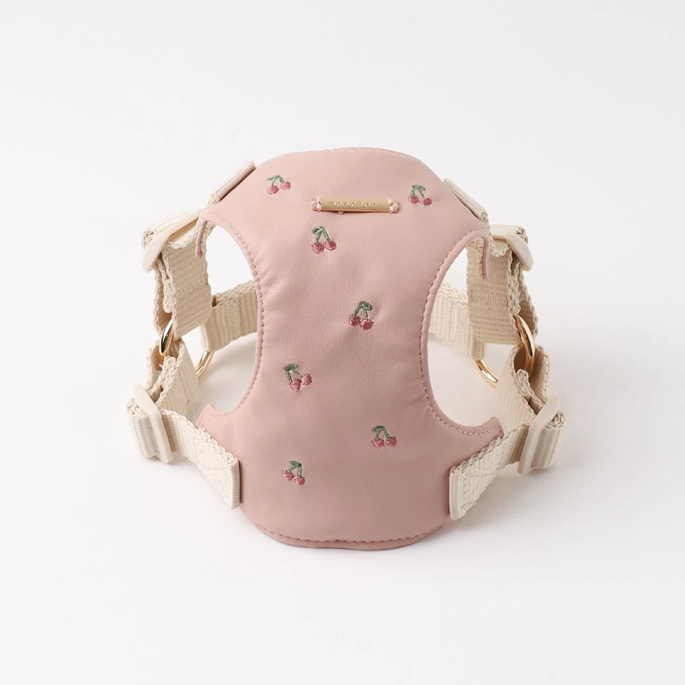 さくらんぼ刺繍ハーネス+リードSET【名入れ刺繍対応】〜愛犬のための特別な散歩スタイル〜