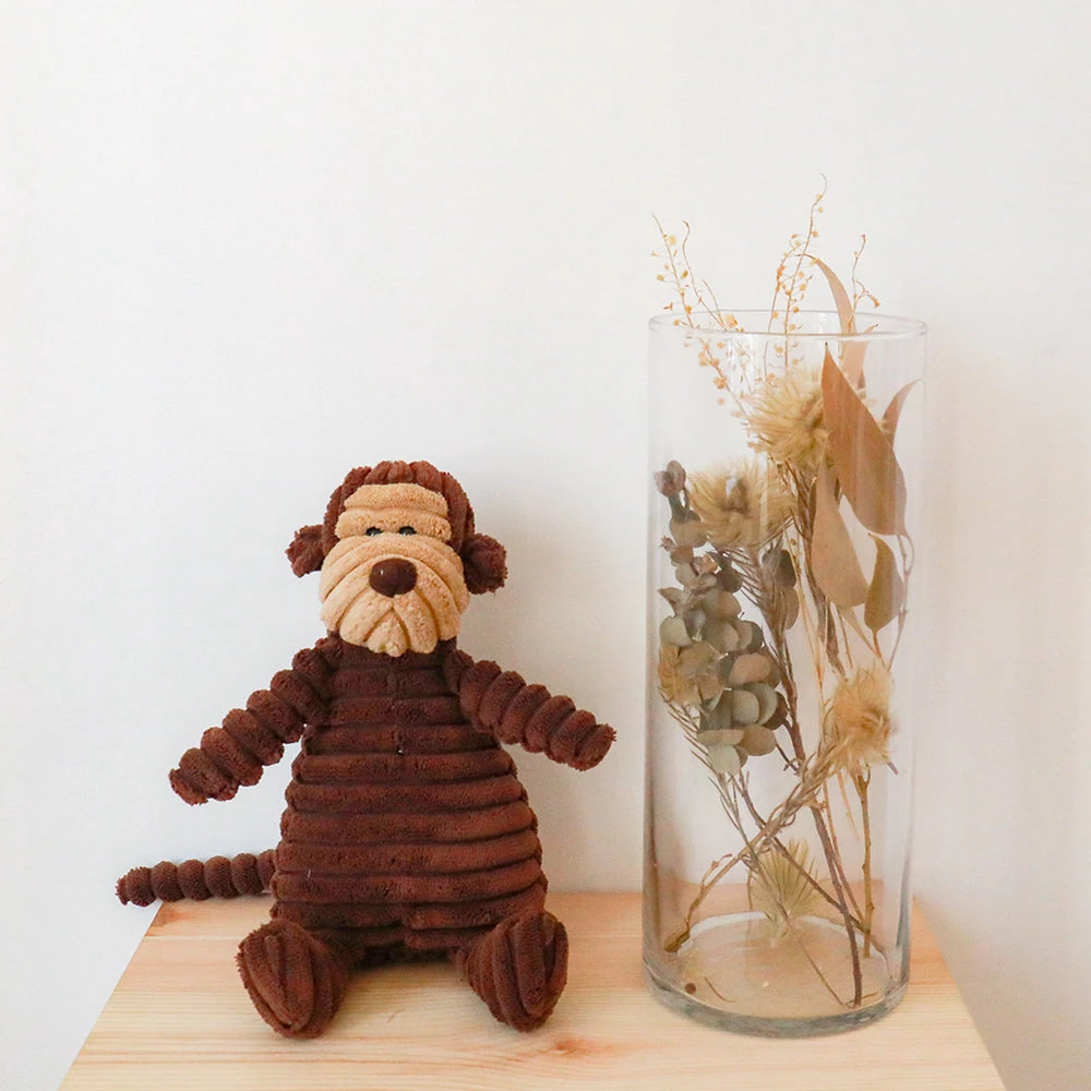 コーデュロイのサルさんは、単なるぬいぐるみ以上の価値を提供します。その柔らかな質感はストレス緩和効果が期待でき、日々の疲れを癒す理想的なコンパニオンとなります。また、洗練されたデザインはどのようなインテリアにも調和し、空間に温かみと品格を添えます。
