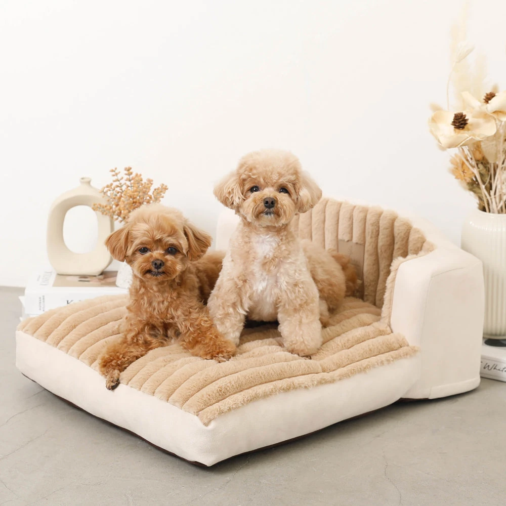 もこもこソファクッションベッドは、従来のペットベッドの概念を超えた設計思想で開発されました。ソファのようなスタイリッシュな外観は、ご自宅のインテリアに調和し、ペットのための特別な空間を創造します。