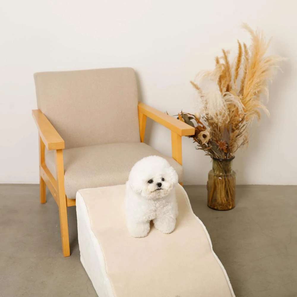 ペットとの暮らしにおいて、ソファやベッドへの昇り降りは日常的な動作です。しかし、特に小型犬やシニアペットにとって、これらの段差移動は関節に負担をかけるリスク要因となります。ファースエードスローステップ階段は、そんなペットの健康と安全を考え抜いて開発された画期的な製品です。