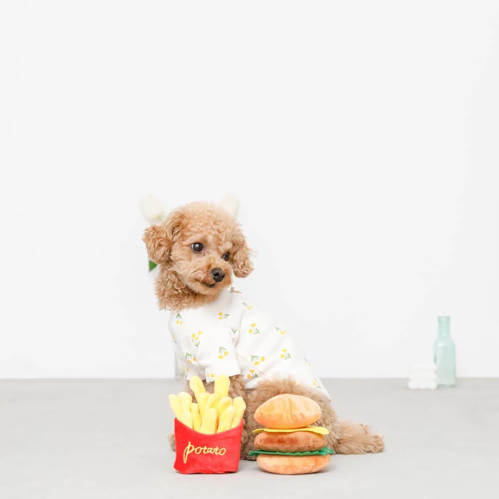 愛犬の遊び心をくすぐる!ハンバーガーとポテトのおもちゃ