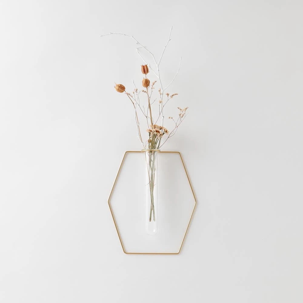 ヘキサゴン型ウォールフラワーベース フック付:洗練された壁面装飾の革新