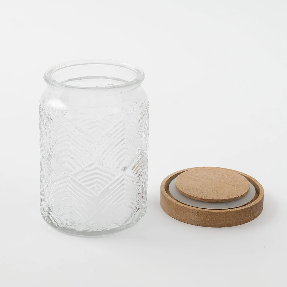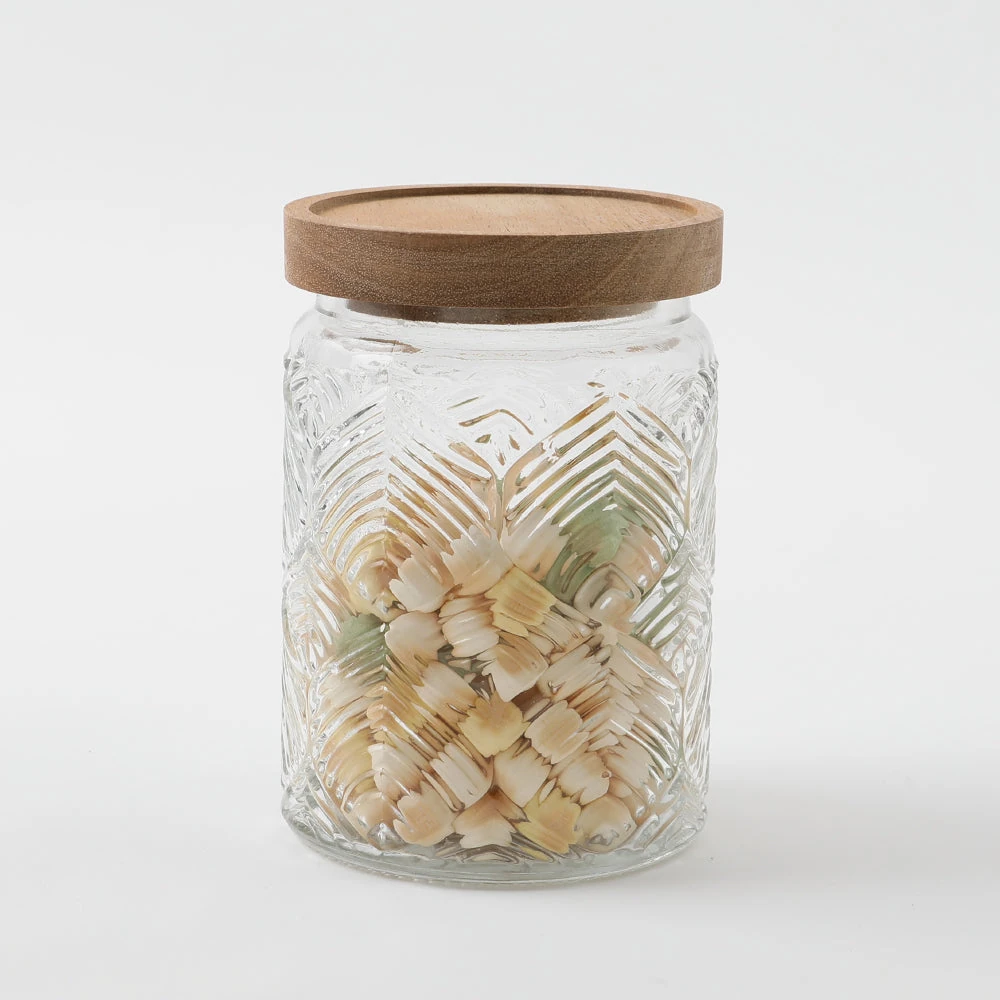 リーフ柄ウッド蓋ガラスキャニスター:美しさと機能性の調和