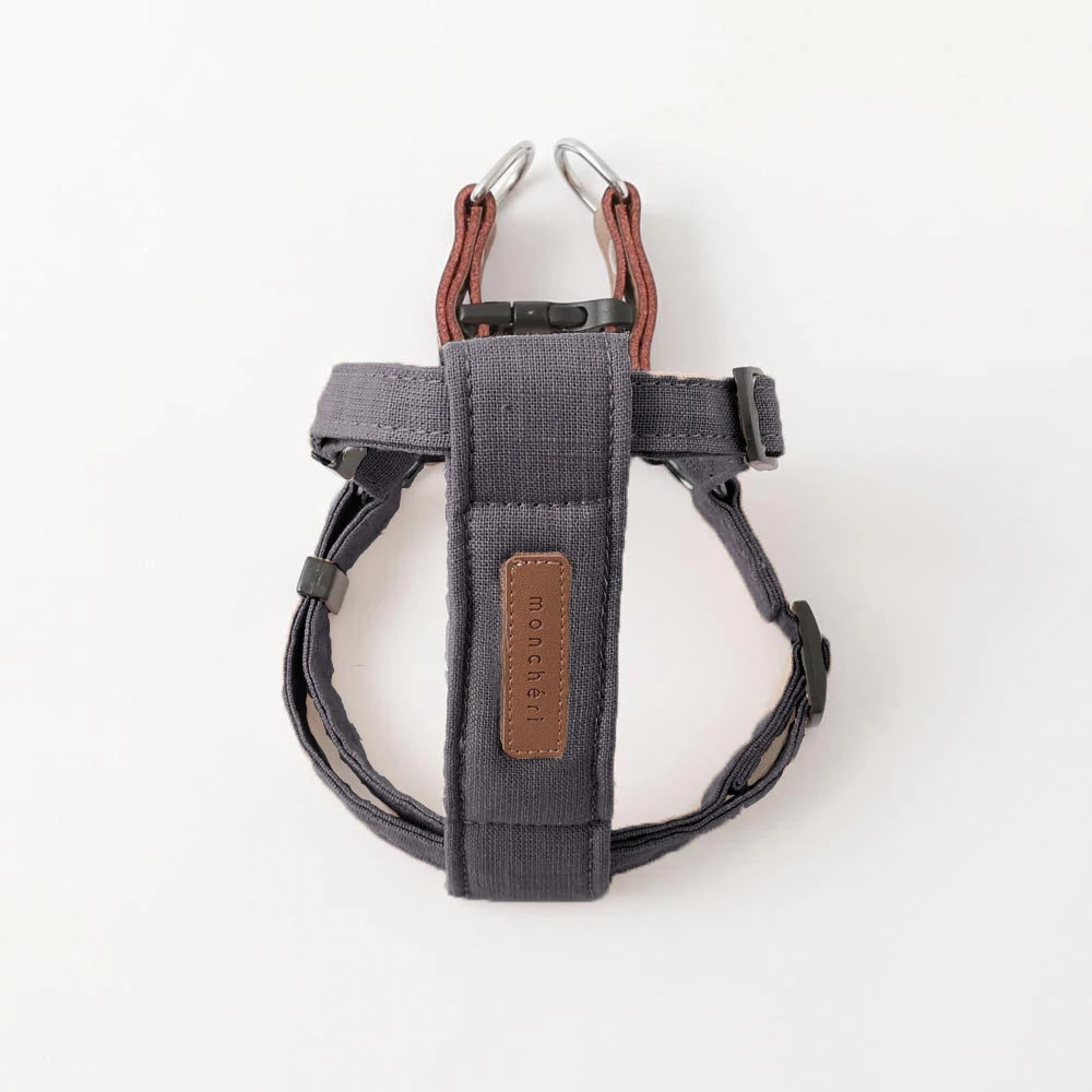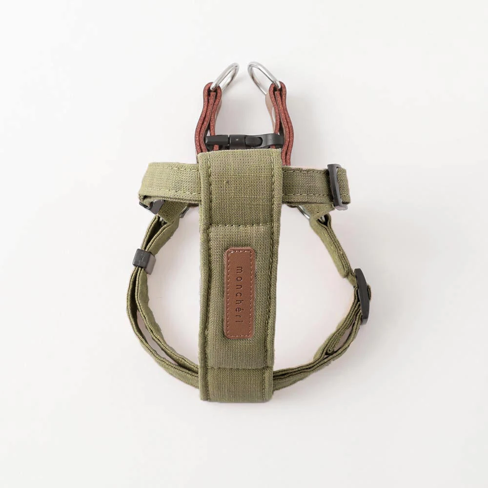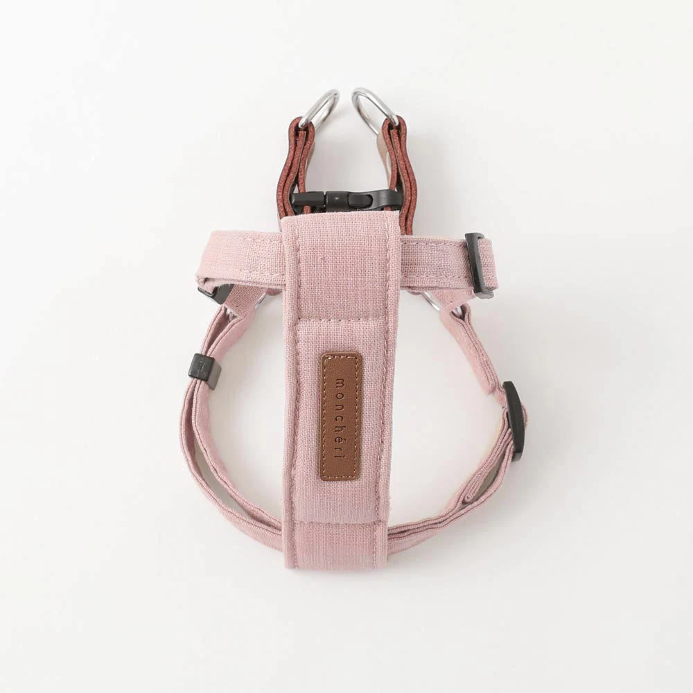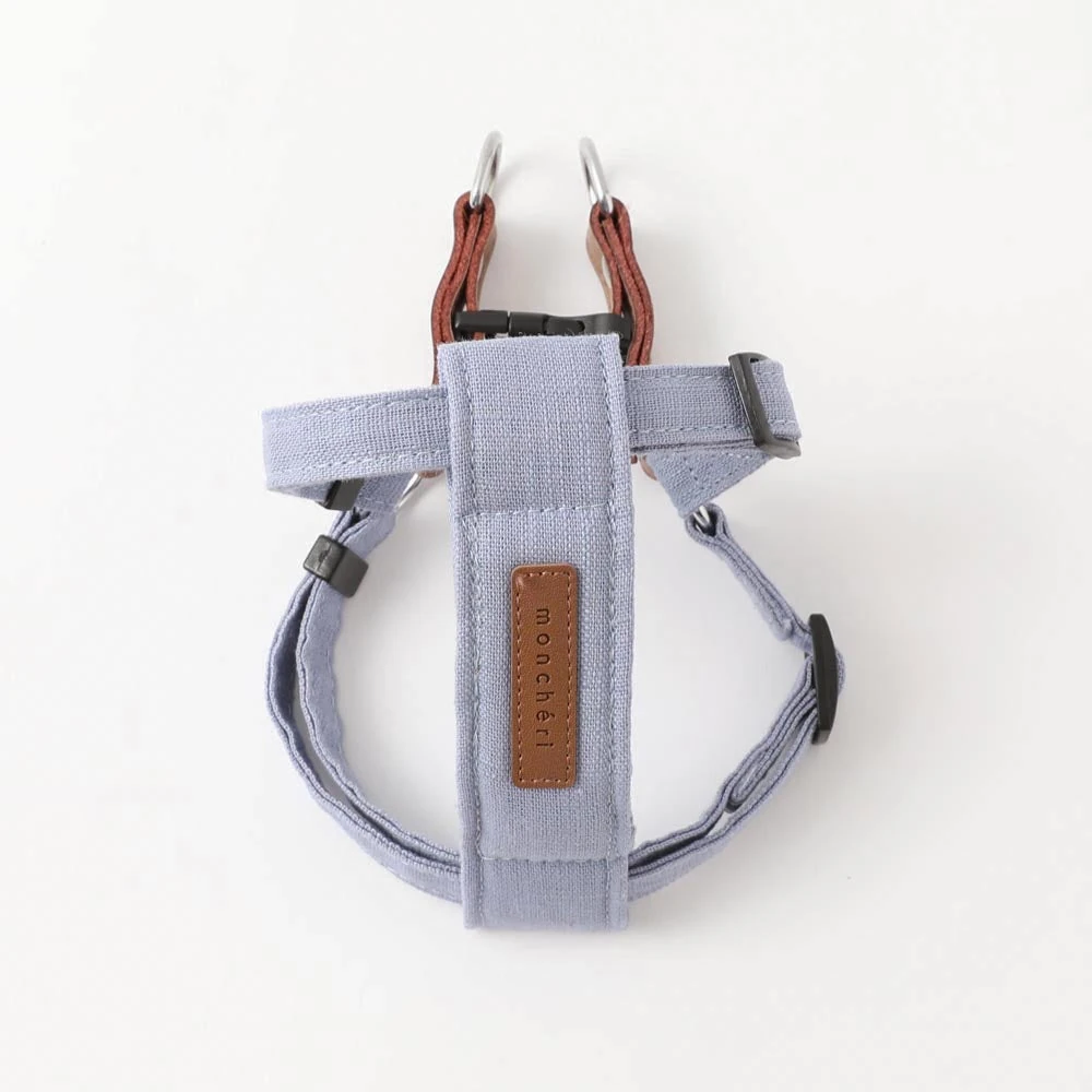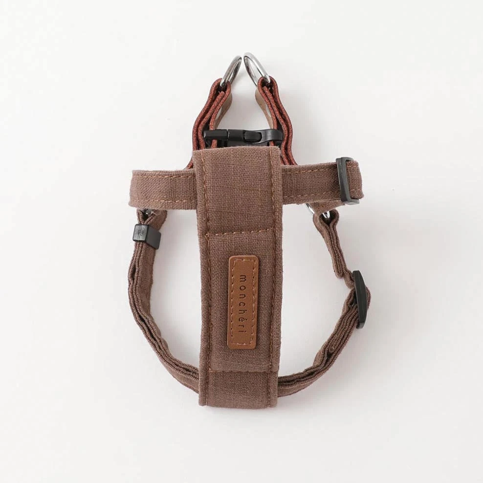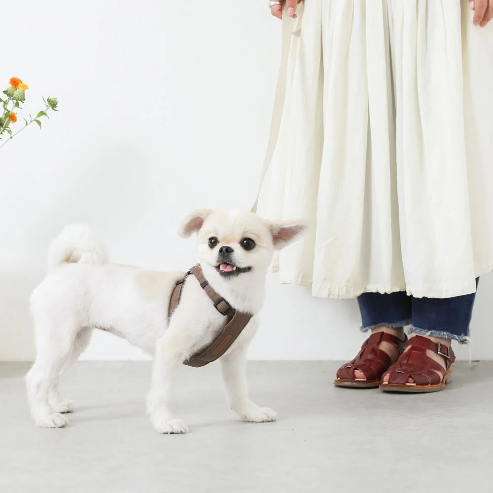 リネン素材の特性を活かした通気性の良さは、暑い季節でも蒸れにくく、愛犬のストレス軽減に貢献します。肌に直接触れる部分にはやわらかなレザーを使用しているため、擦れやかぶれの心配が少なく、敏感肌のワンちゃんにも優しい設計です。
