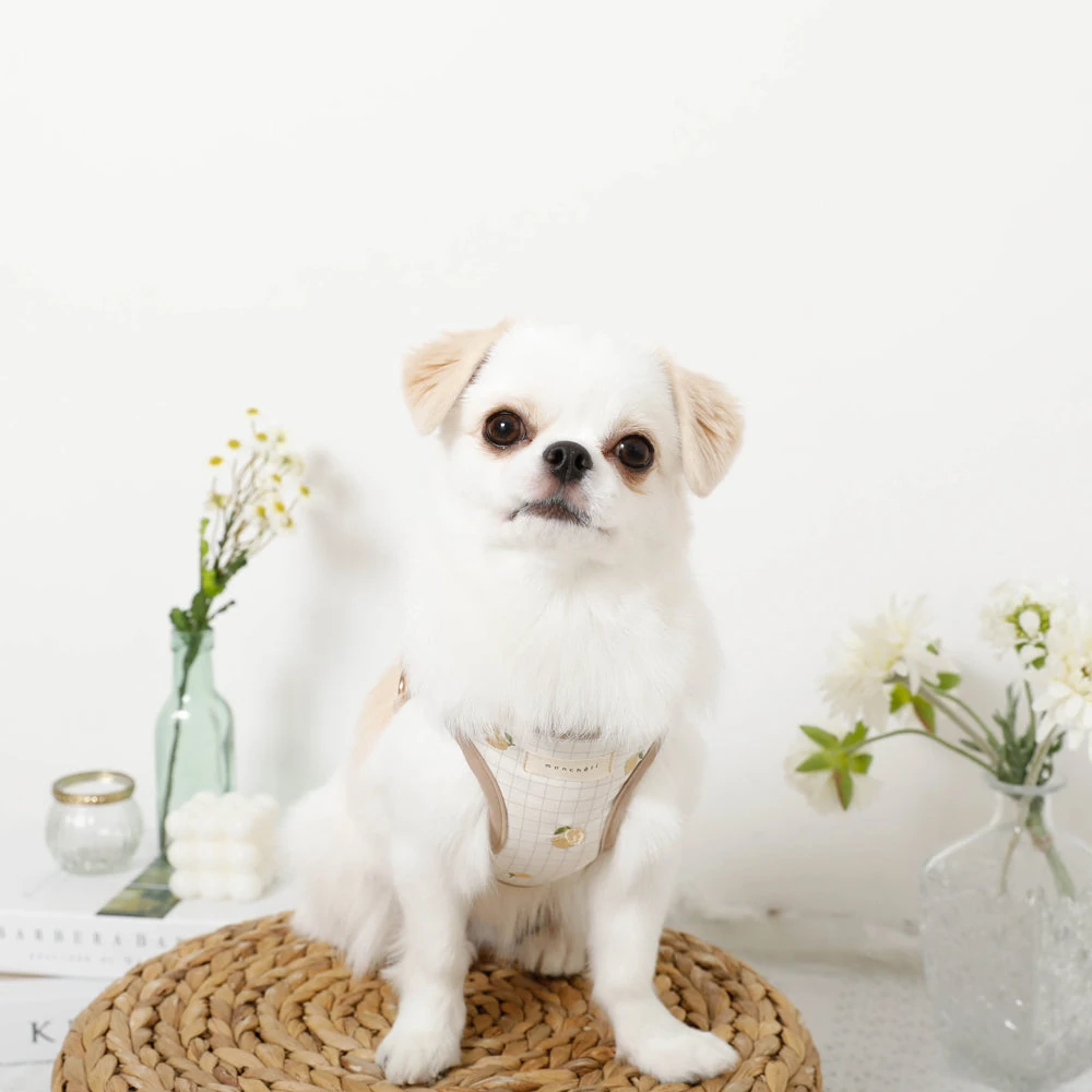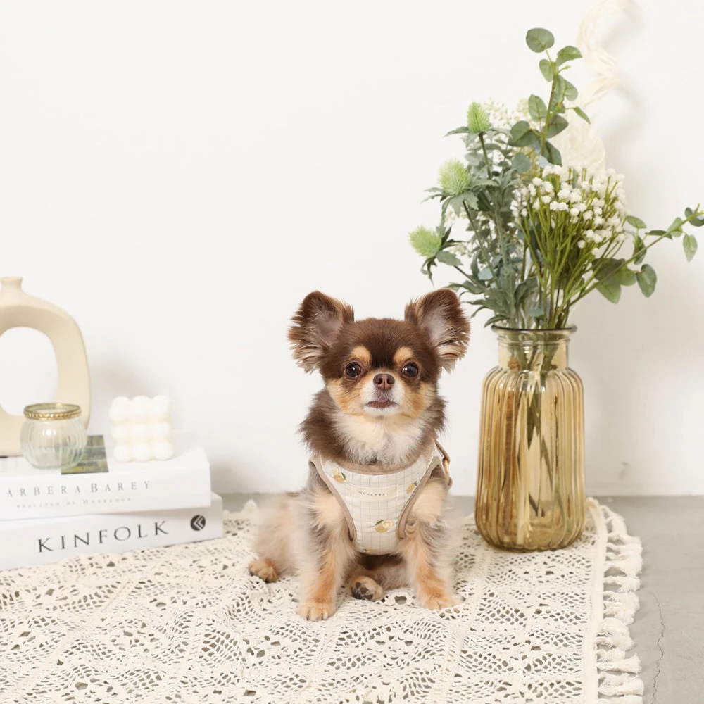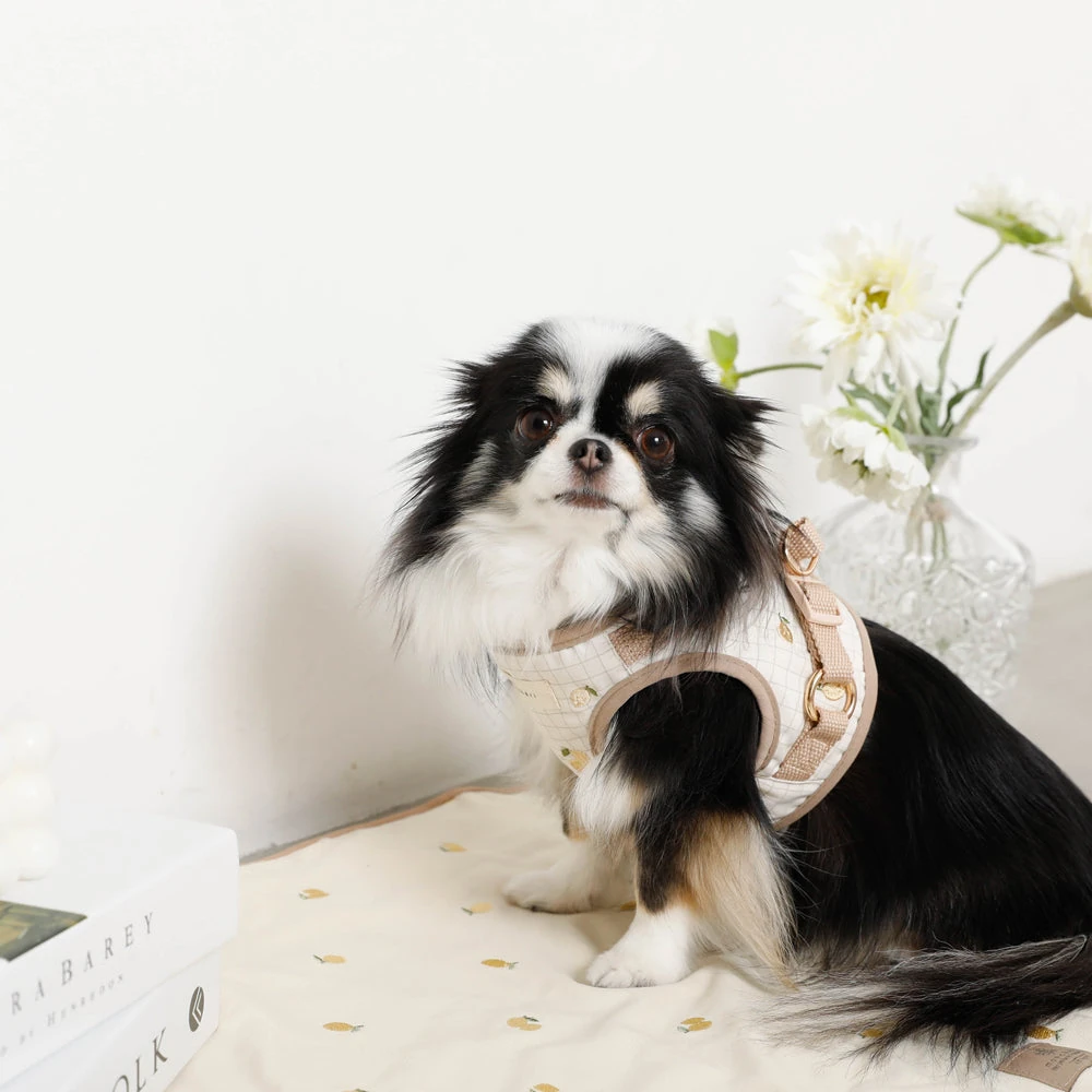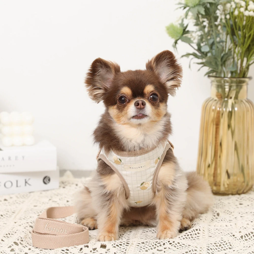 レモン柄刺繍ハーネス+リードSET:愛犬のための特別な贈り物