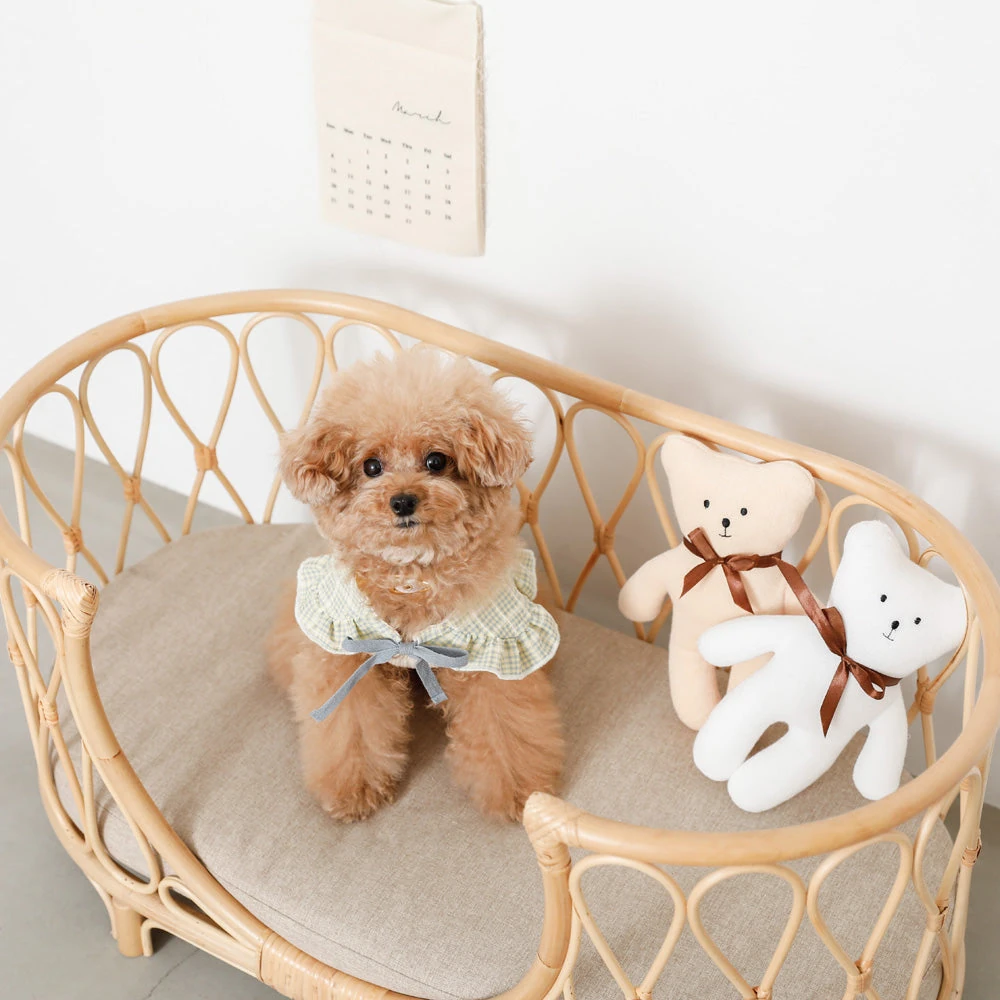 クラシックでありながら現代的なテイストを融合したデザインは、どんな犬種にもマッチします。熊のモチーフは可愛らしさの中にも上品さを感じさせる仕上がりです。