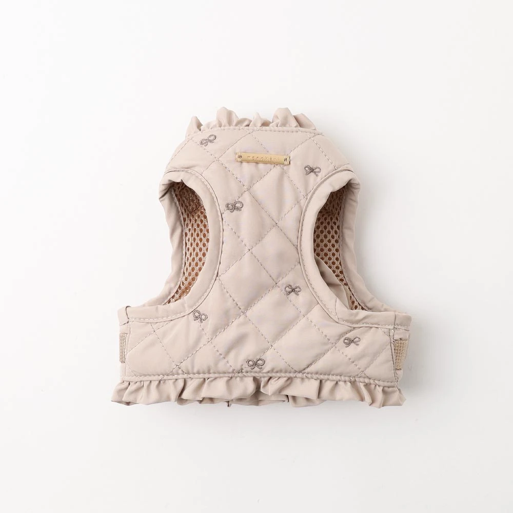 愛犬との毎日をもっと特別に、もっと楽しく。リボン刺繍フリルキルティングハーネス+リードSETは、そんな願いを込めて開発されました。機能性と美しさを兼ね備えた本商品で、愛犬との素敵な時間をさらに輝かせてください。ご購入を心よりお待ちしております。