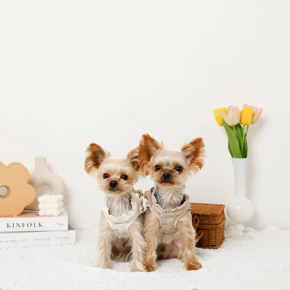愛犬の魅力を最大限に引き出す、洗練されたデザインのハーネス&リードセットが誕生しました。リボン刺繍と優雅なフリルが特徴的な本商品は、単なるペット用品ではなく、愛犬との特別な時間を彩るファッションアイテムです。丁寧に仕上げられたキルティング加工と、世界にひとつだけの名入れ刺繍によって、愛犬の個性を存分に表現できます。