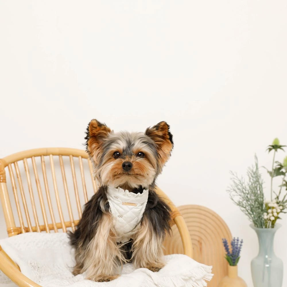 リボン刺繍とフリルの組み合わせは、クラシックでありながらモダンな印象を与えます。刺繍には色褪せにくい高品質の糸を使用し、洗濯後も美しさを保ちます。フリル部分は取り外し可能で、お好みに合わせてスタイルを変更できるのも特徴です。カラーバリエーションも豊富にご用意しており、愛犬の毛色やお好みに合わせてお選びいただけます。