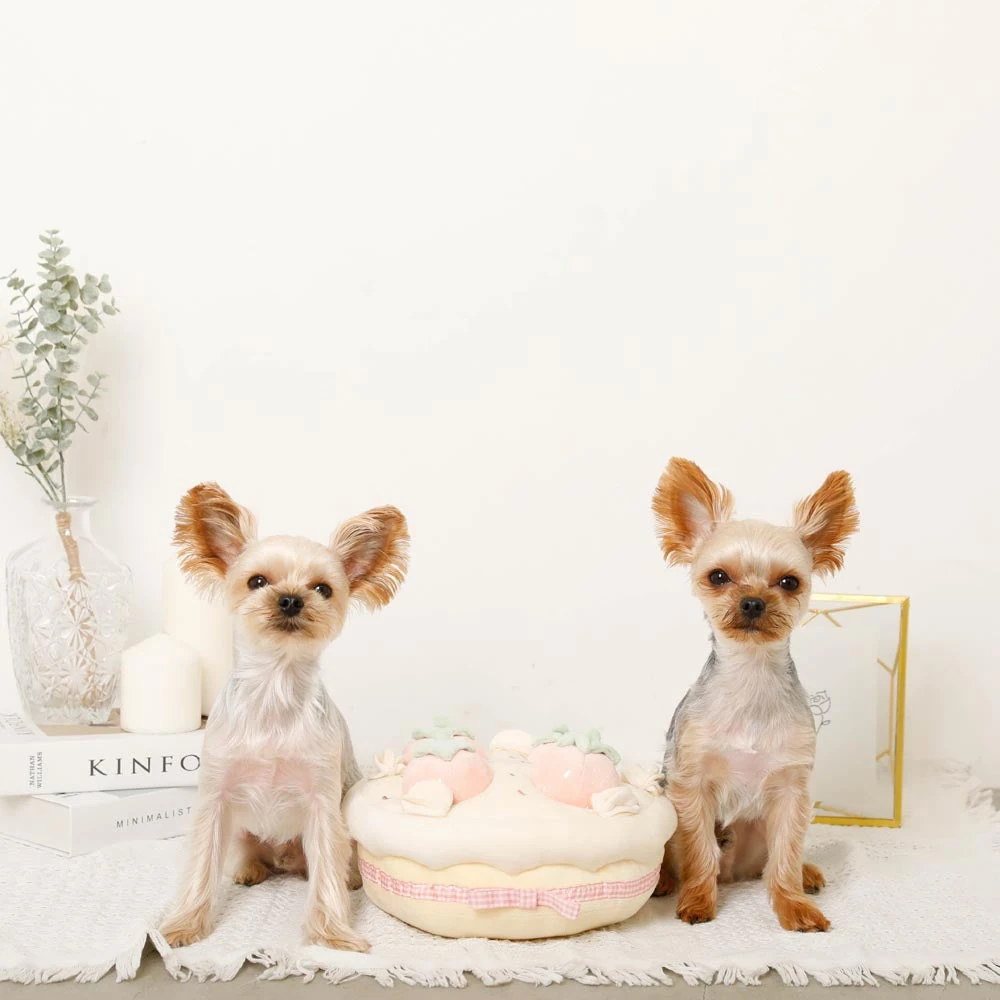 • リアルないちごケーキデザイン:視覚的にも楽しいデザインが愛犬の興味を引き付けます