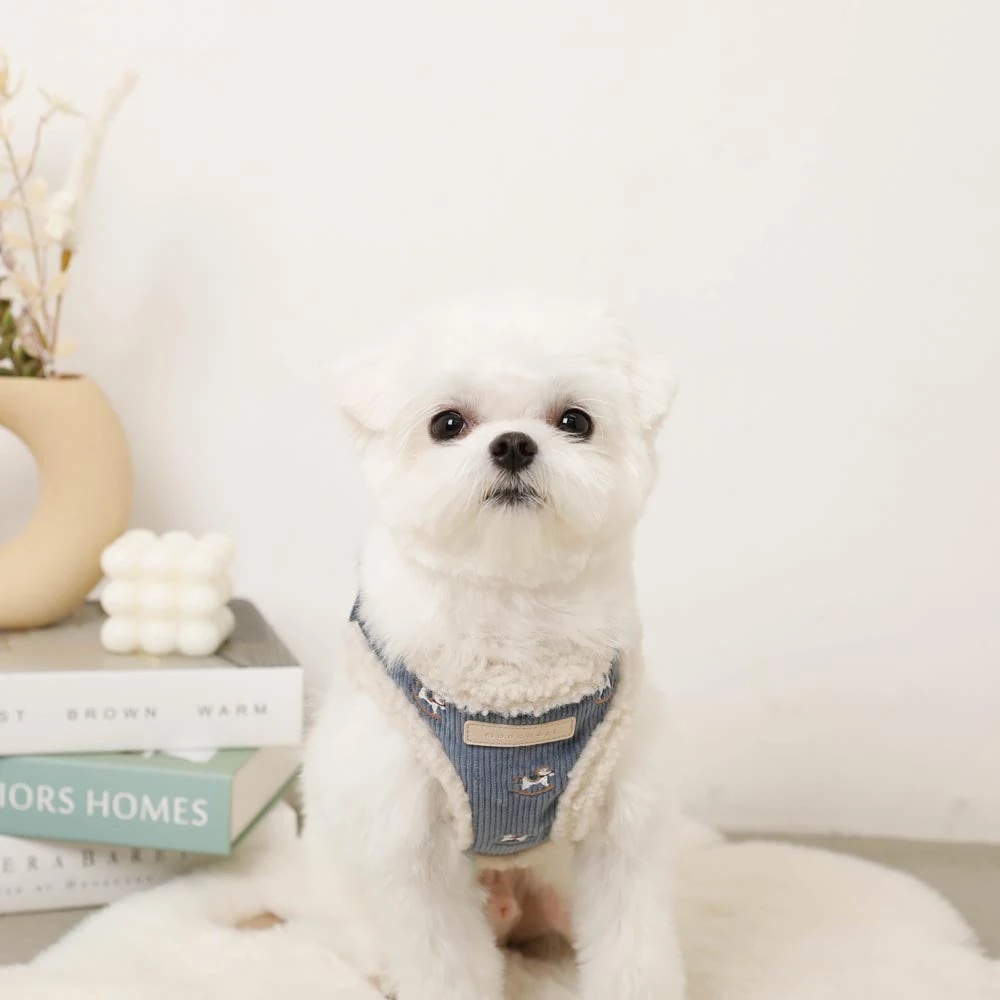愛犬の特別感を最高に引き出す木馬刺繍入りコーデュロイボアハーネス+リードSET