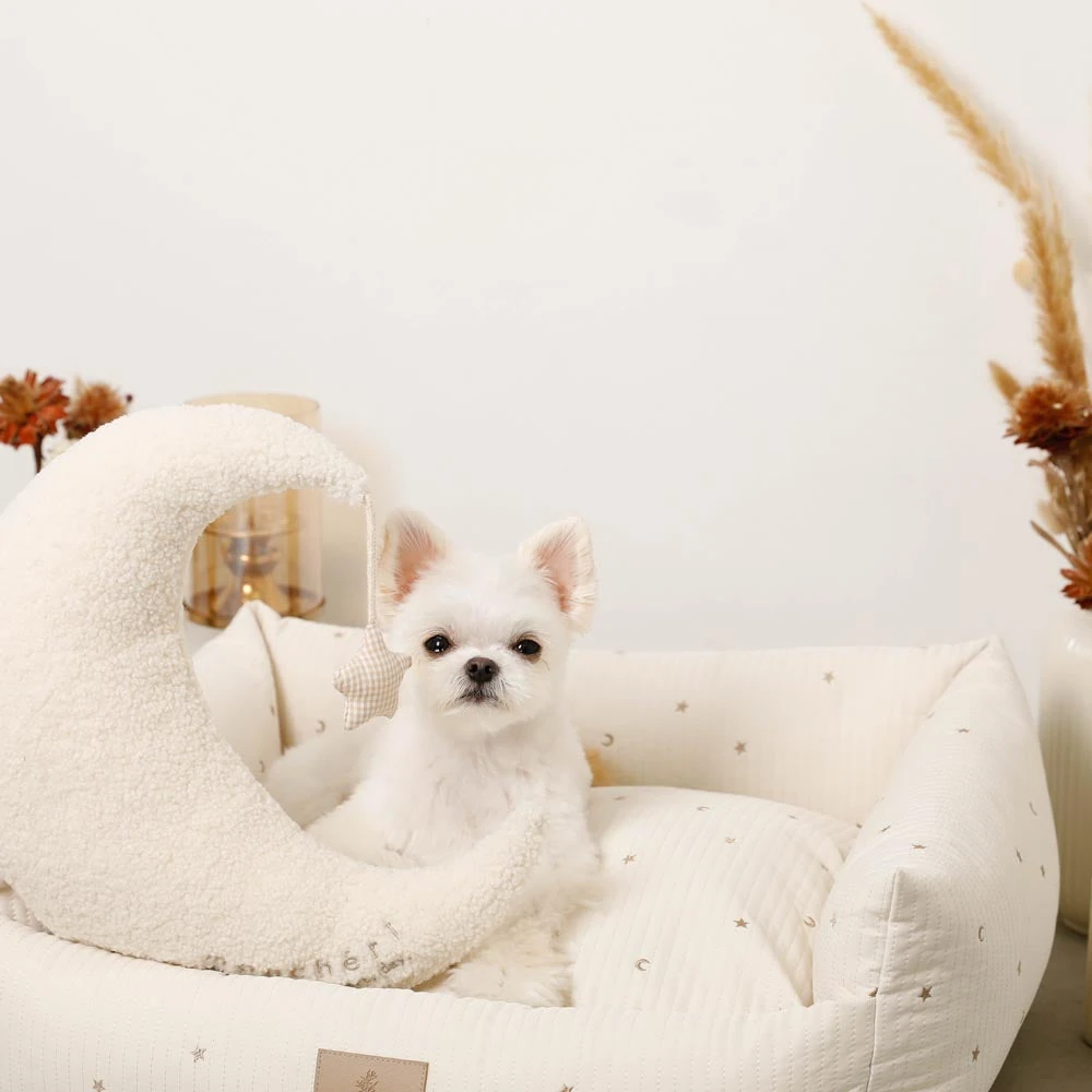 お星さまとお月さまのモチーフは、どんなインテリアにも溶け込む上品なデザイン。刺繍の細部までこだわり、高級感のある仕上がりを実現しています。ペットの寝床としてだけでなく、お部屋のアクセントとしてもご活用いただけます。